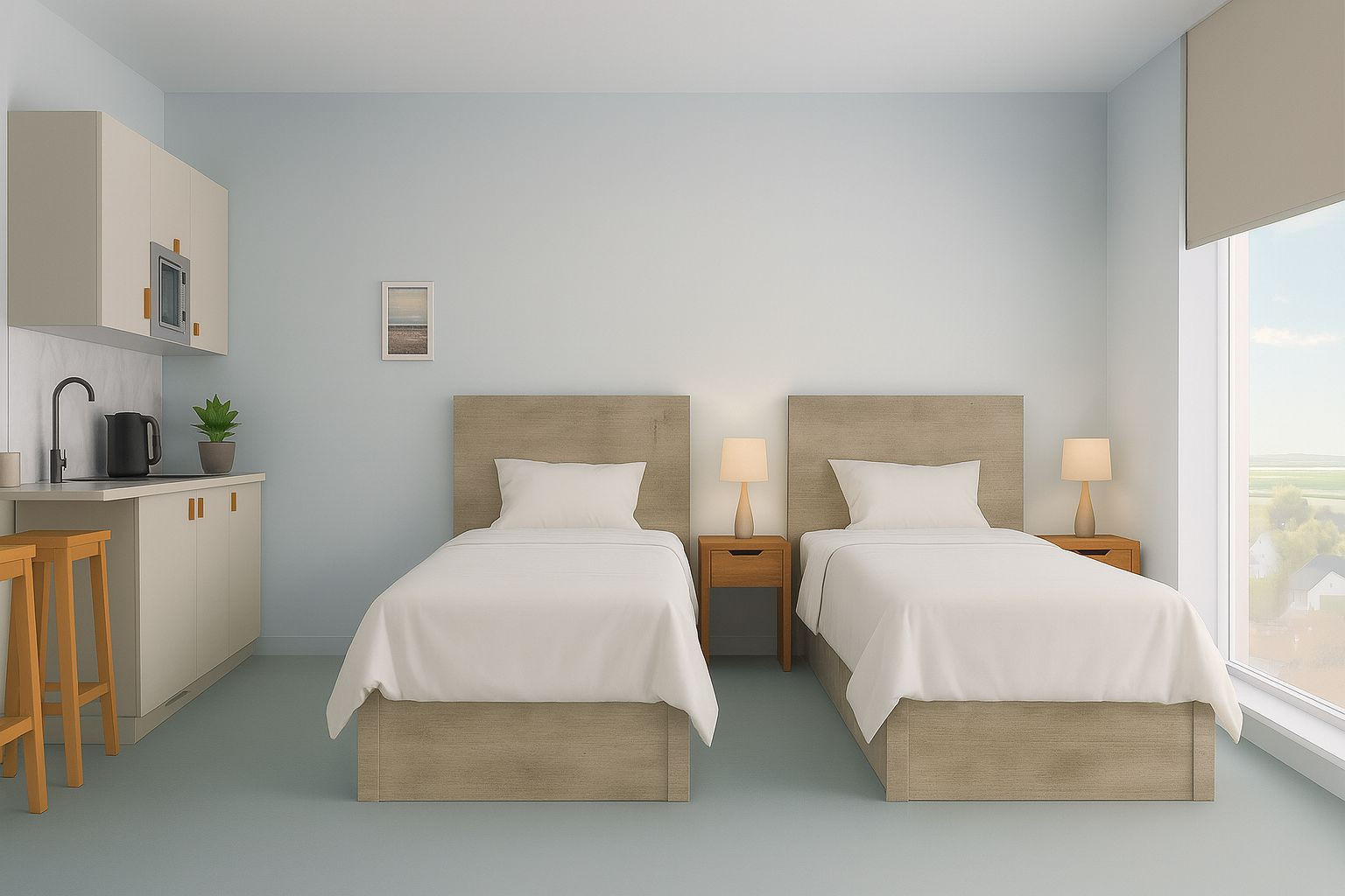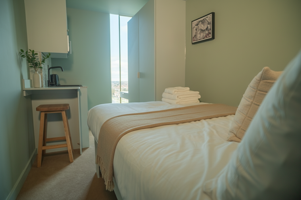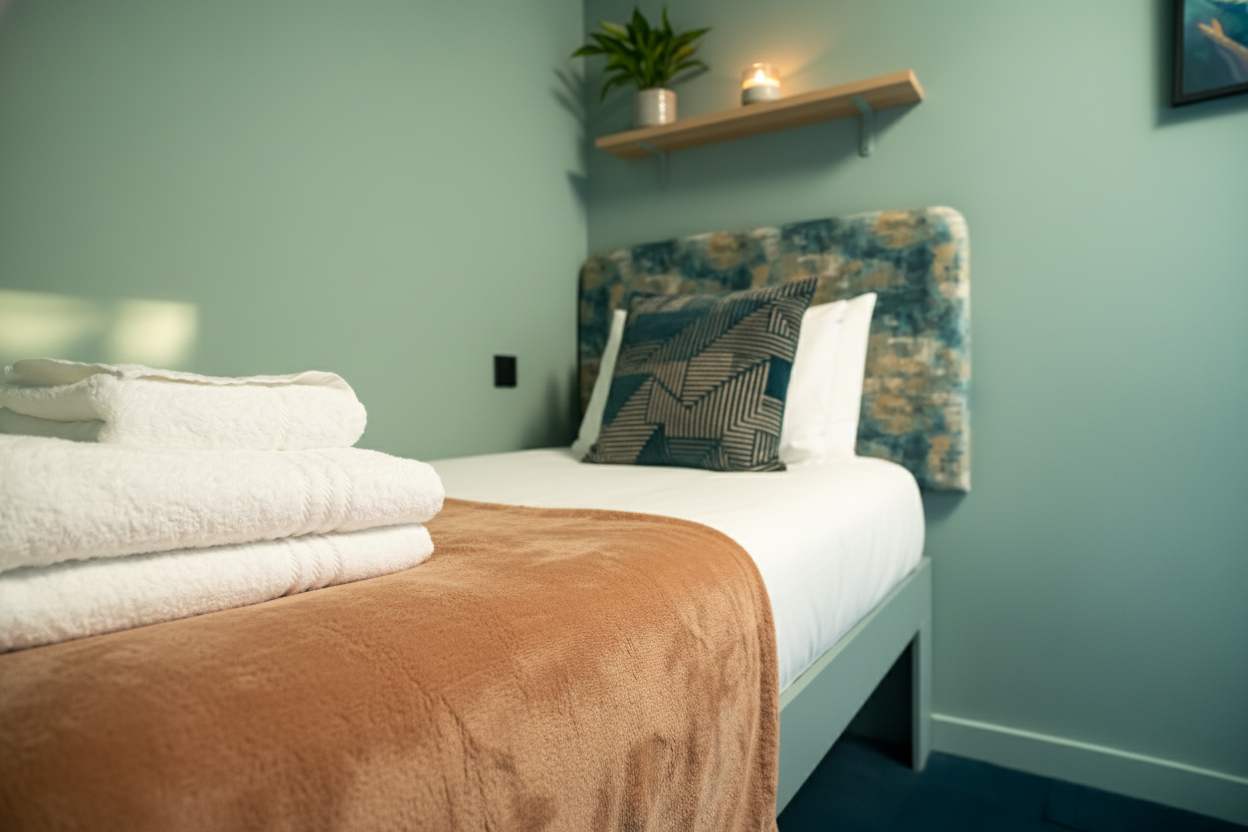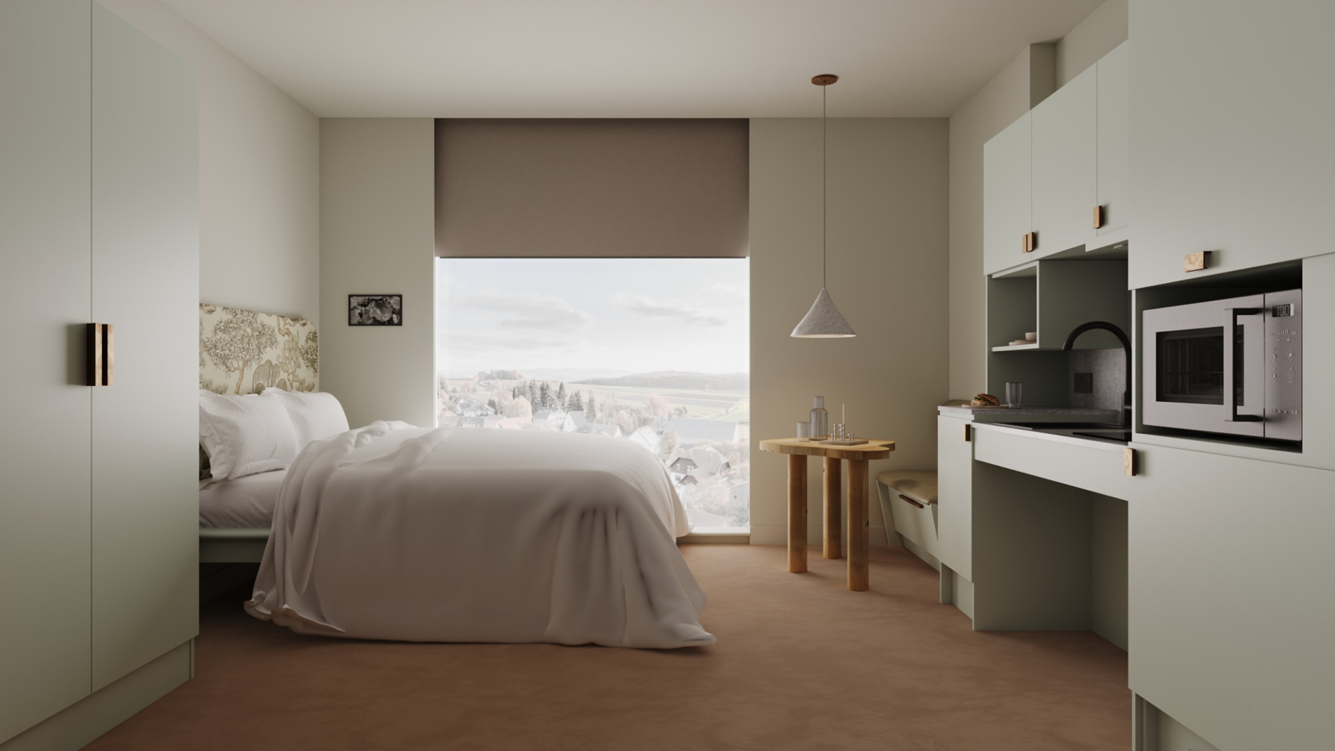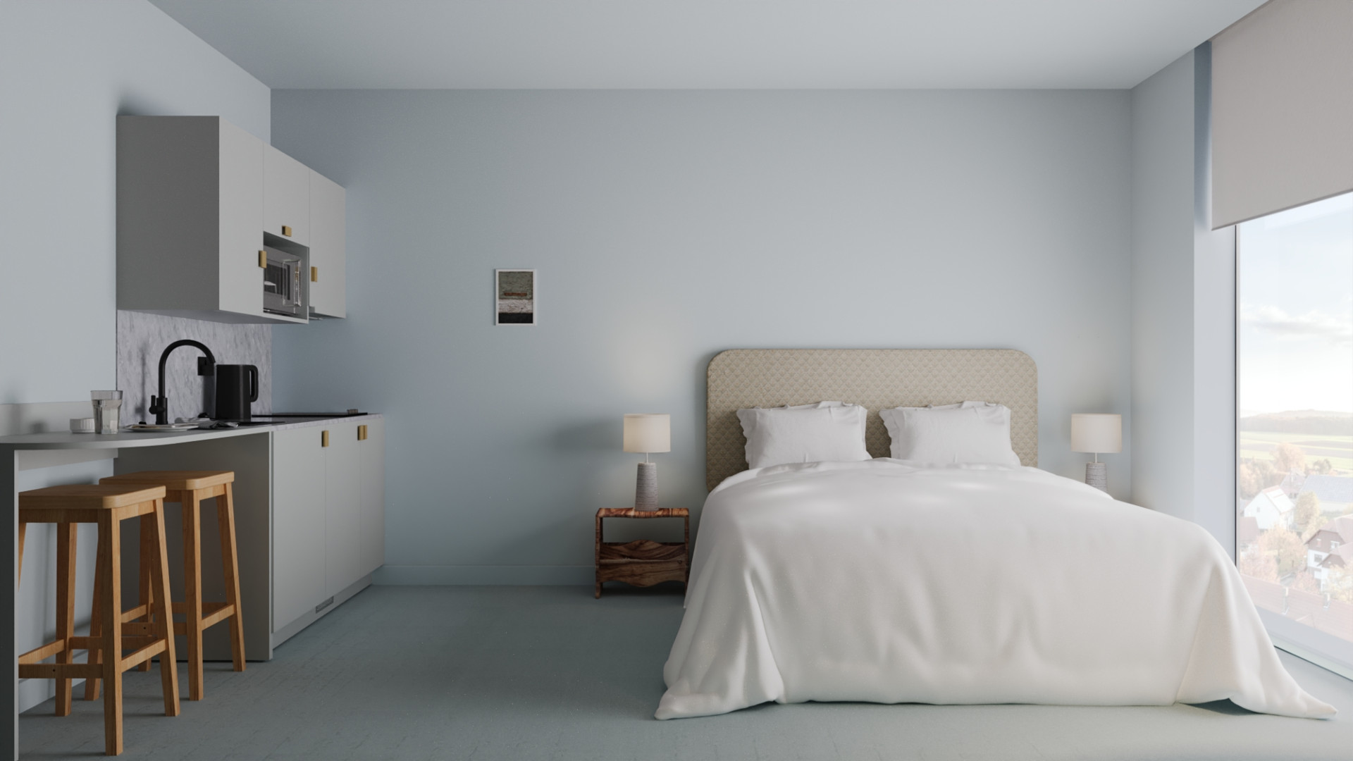 Our studio-style rooms come in 7 different categories - ensuite, snug, cosy, roomy, spacious, deluxe, as well as accessible for people with disabilities. You can also choose from 4 different themes based upon the elements - earth, air, water, or fire. They variously have kitchenettes, banquettes with dining tables, desks, vanities, and breakfast bars. All have ensuite bathrooms with rain showers, places to sit and work or eat, and a wardrobe.