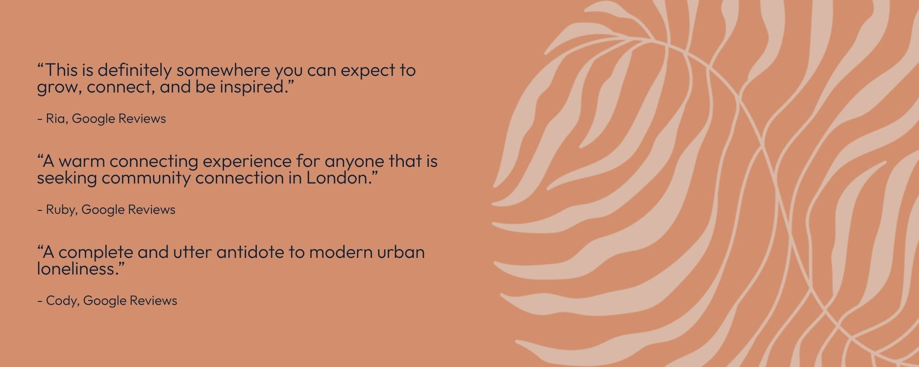 Discover the breadth and diversity of our events in the below example weekly programme, all of which are included for free in an &Soul membership
